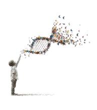 At the center of our new identity is a child gazing upward at a DNA strand made of butterflies.